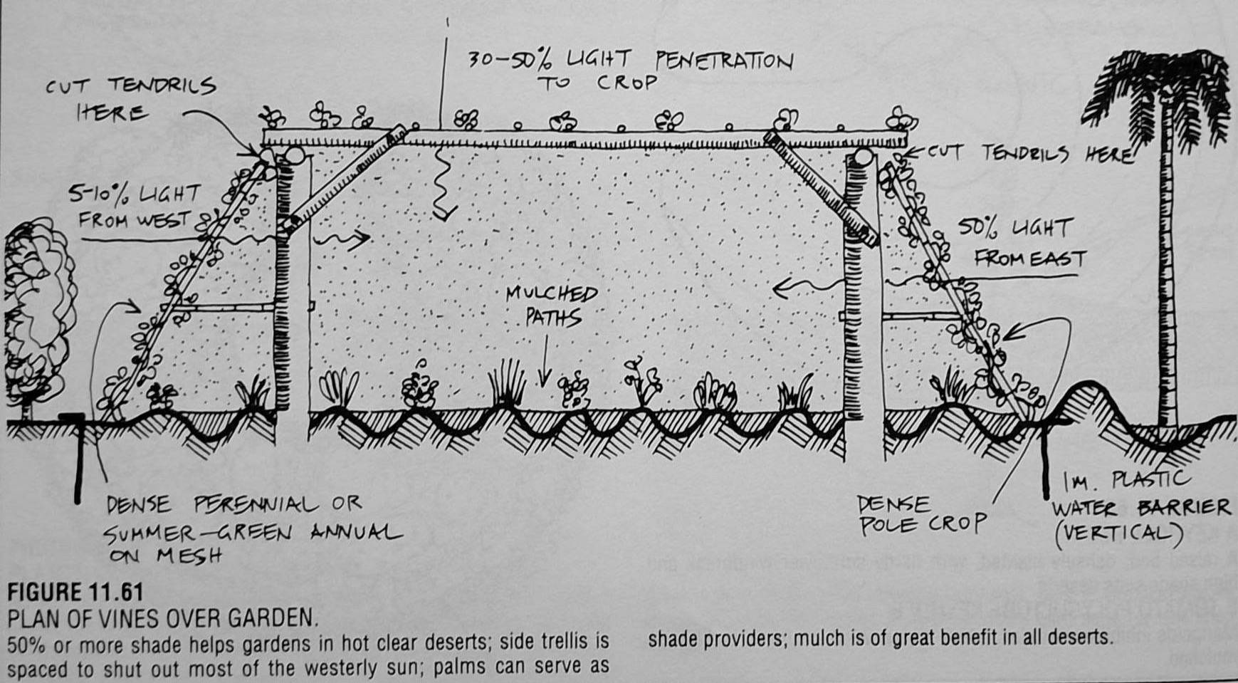 Vines as a shade strategy in desert regions that also produce yield.