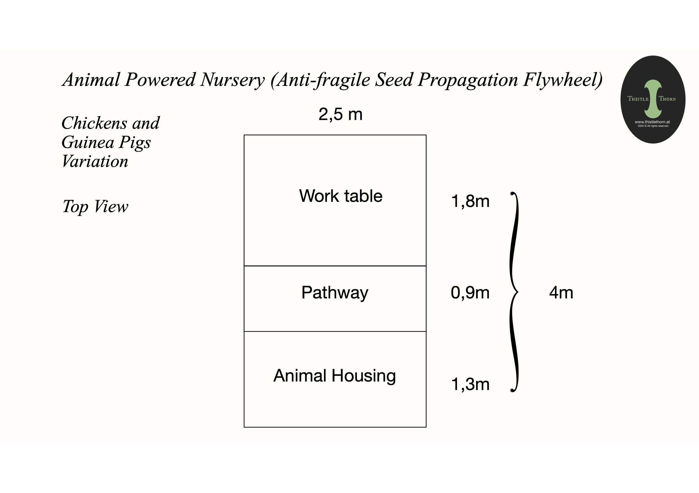 In the last letter, we explained that the minimal viable nursery takes 10m2 of footprint to sustain 1000m2 of garden beds.