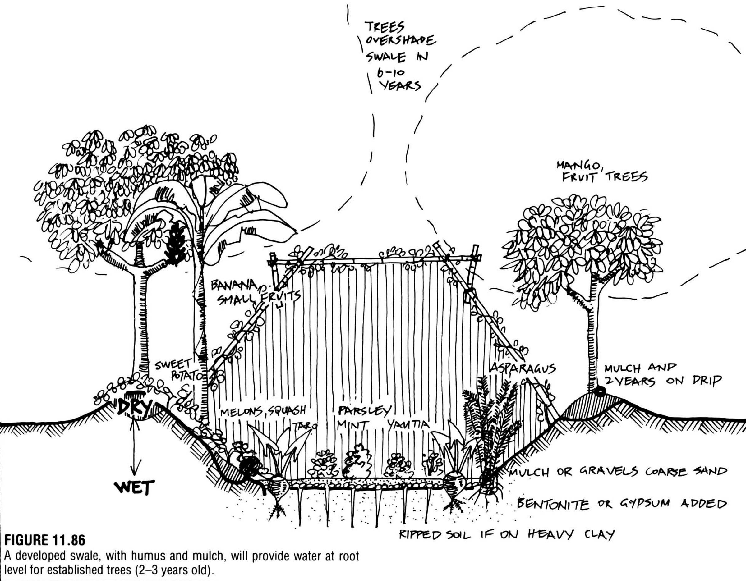 Nevertheless, in our gardens (if our site doesn't face an extreme situation), we can overcome it by applying the techniques discussed in part 3, preventing evaporation, planting trees and perennials, and creating soil.